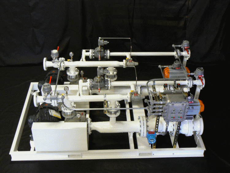 Bombas para GLP equipadas con reguladores de presión constante, strainer, válvulas de aislamiento, loops de By-pass, manómetros y otros componentes necesarios para una operación segura y eficiente.